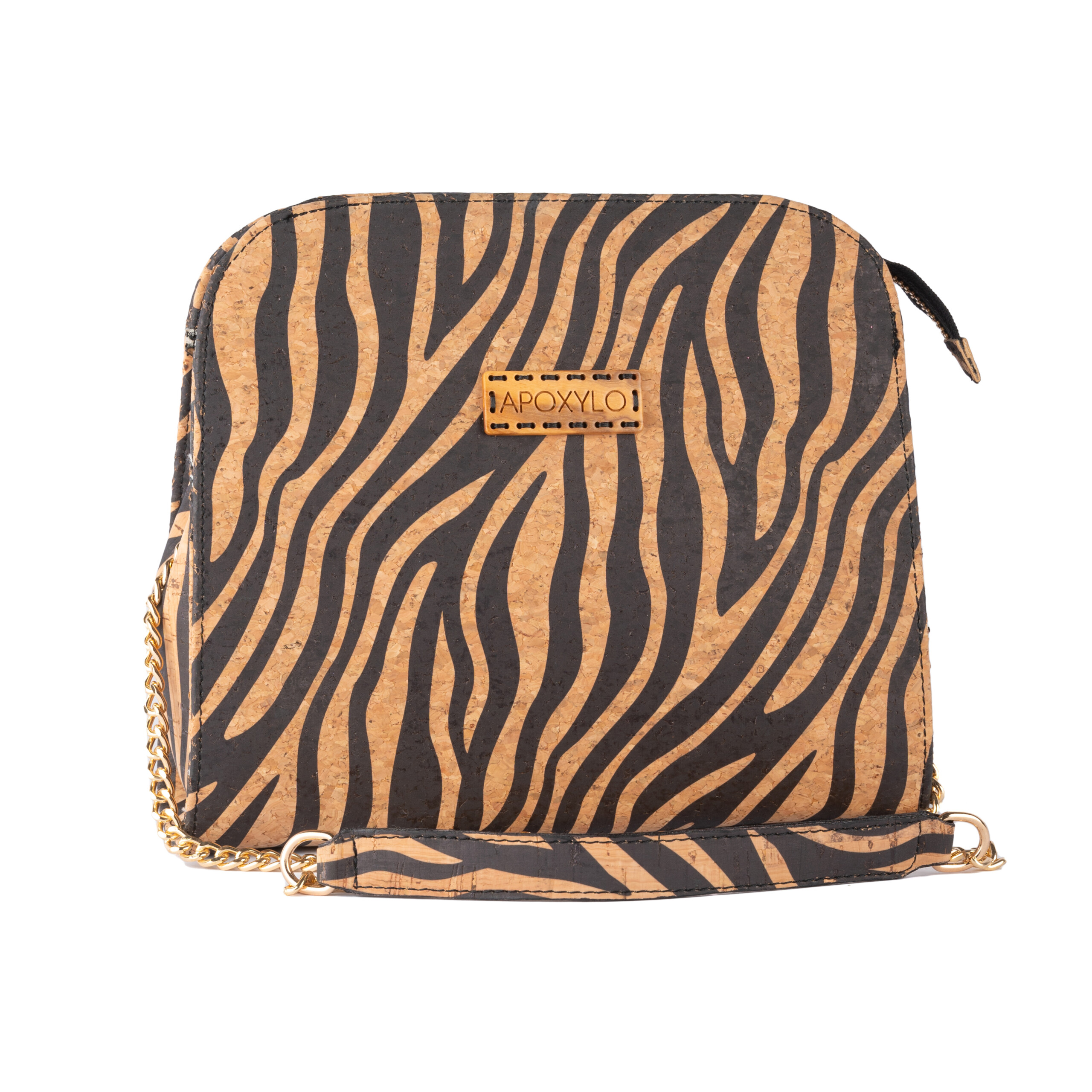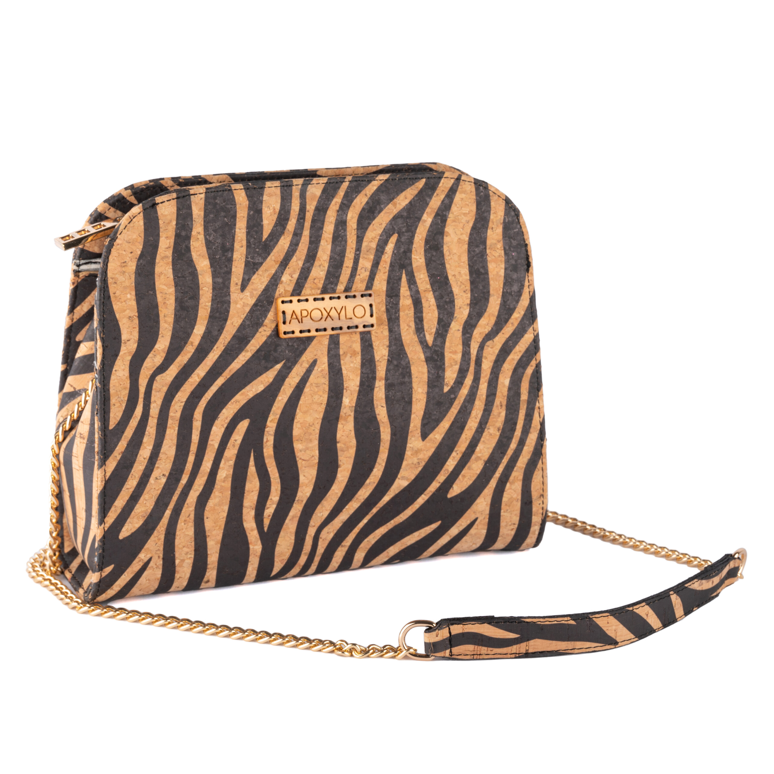 Chain Zebra shoulder bag with natural cork zebra printed