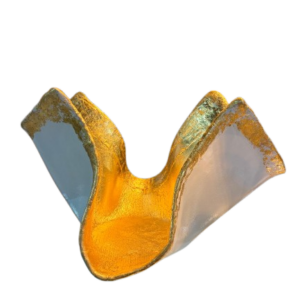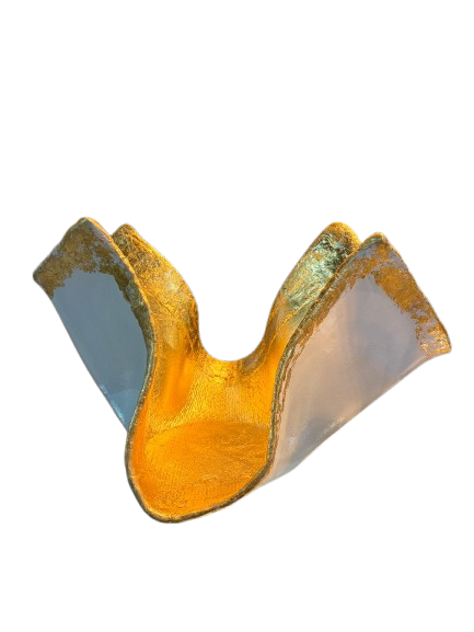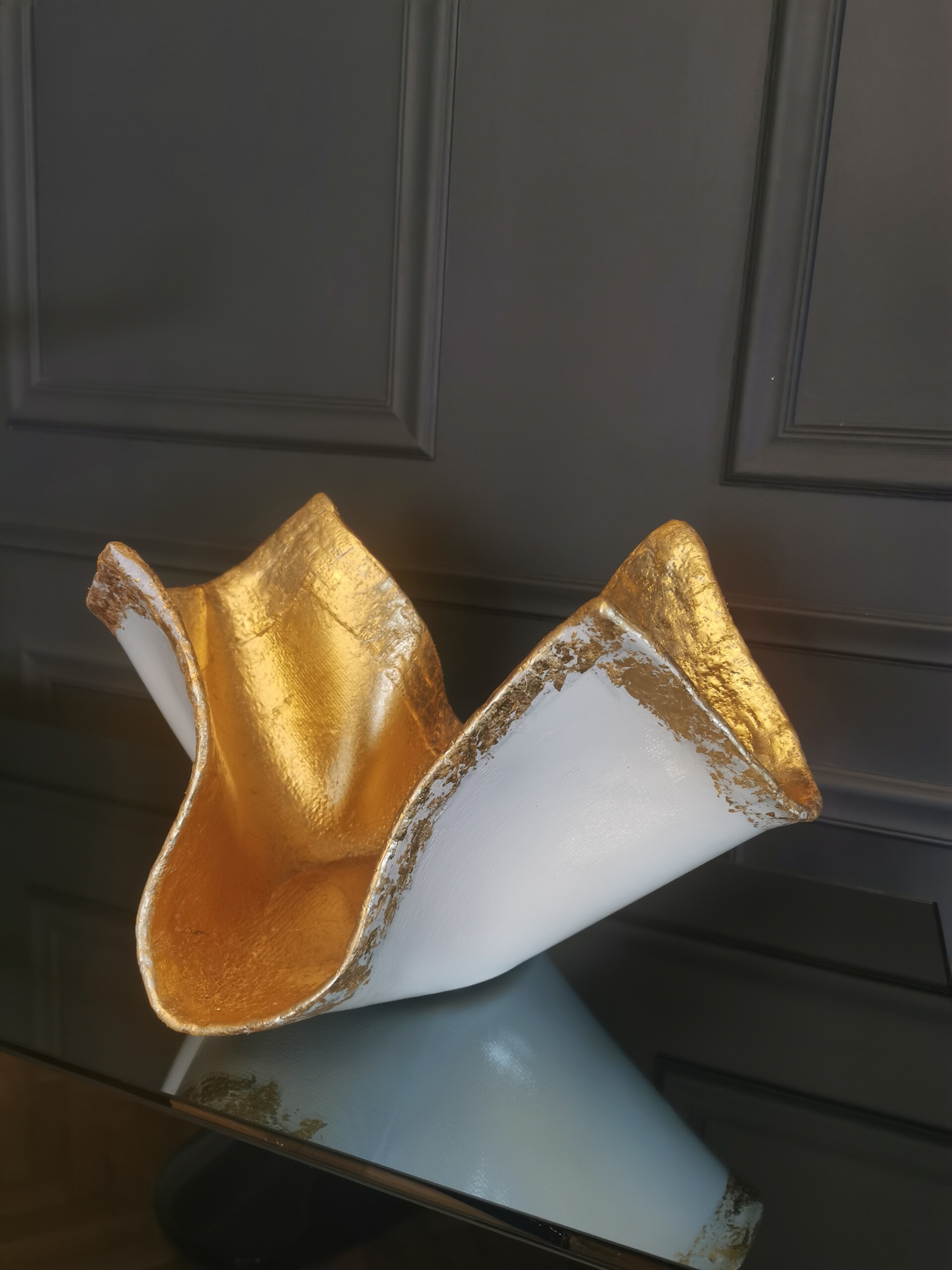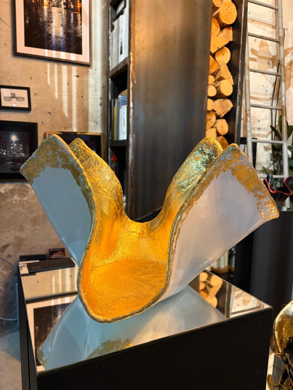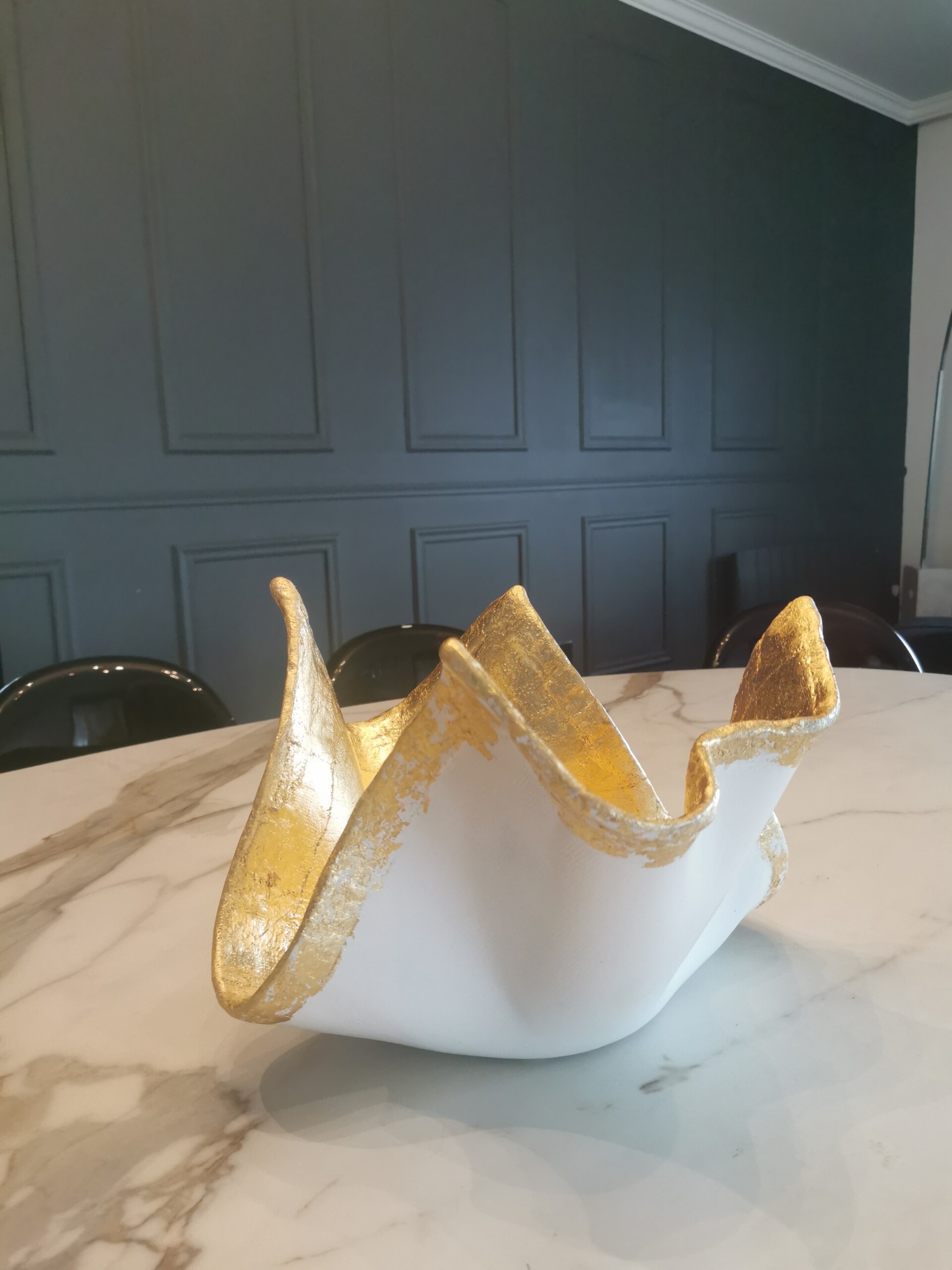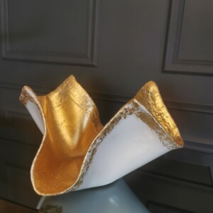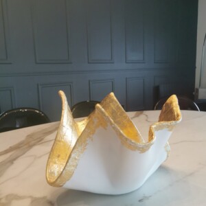 Concrete White Bowl Sculpture with Gold Leaf Details