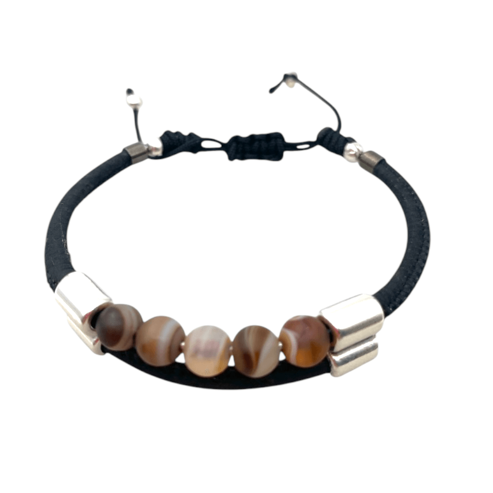 Five Agate bracelet with natural cork in black color
