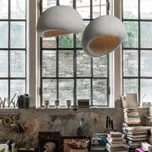 Single-light suspension light made of resin. It comes in grey color but it can be painted in any ral colors. Available in 7 sizes with a diameter from 30cm up to 110cm.