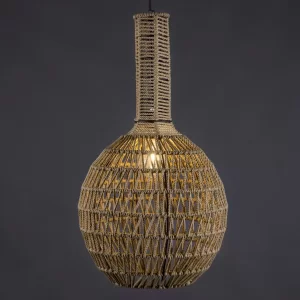 Pendant made of straw and metal. Ideal for venues with ethnic decoration and natural style. The shape and the size of the fixture can be alternated upon request.
