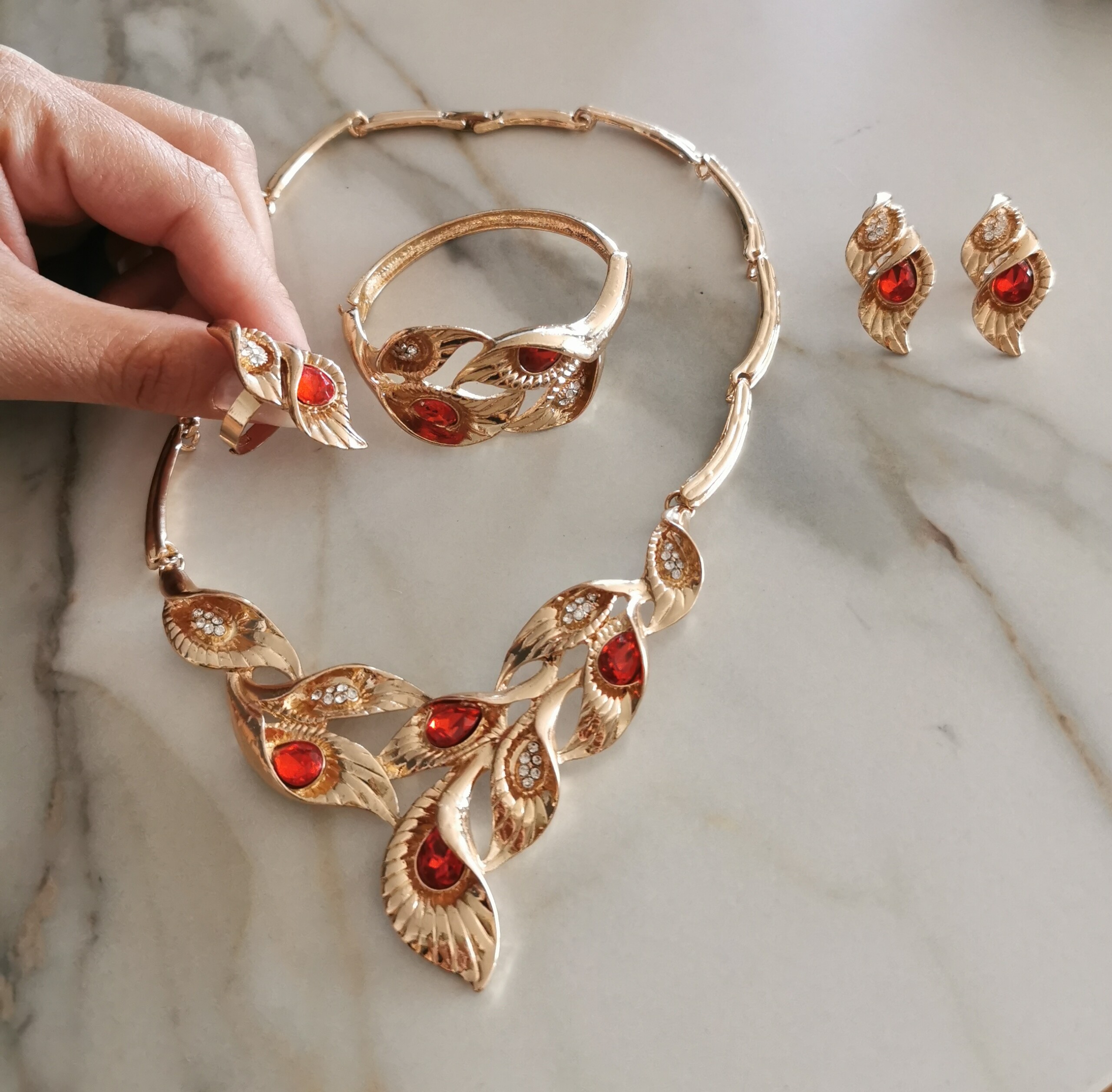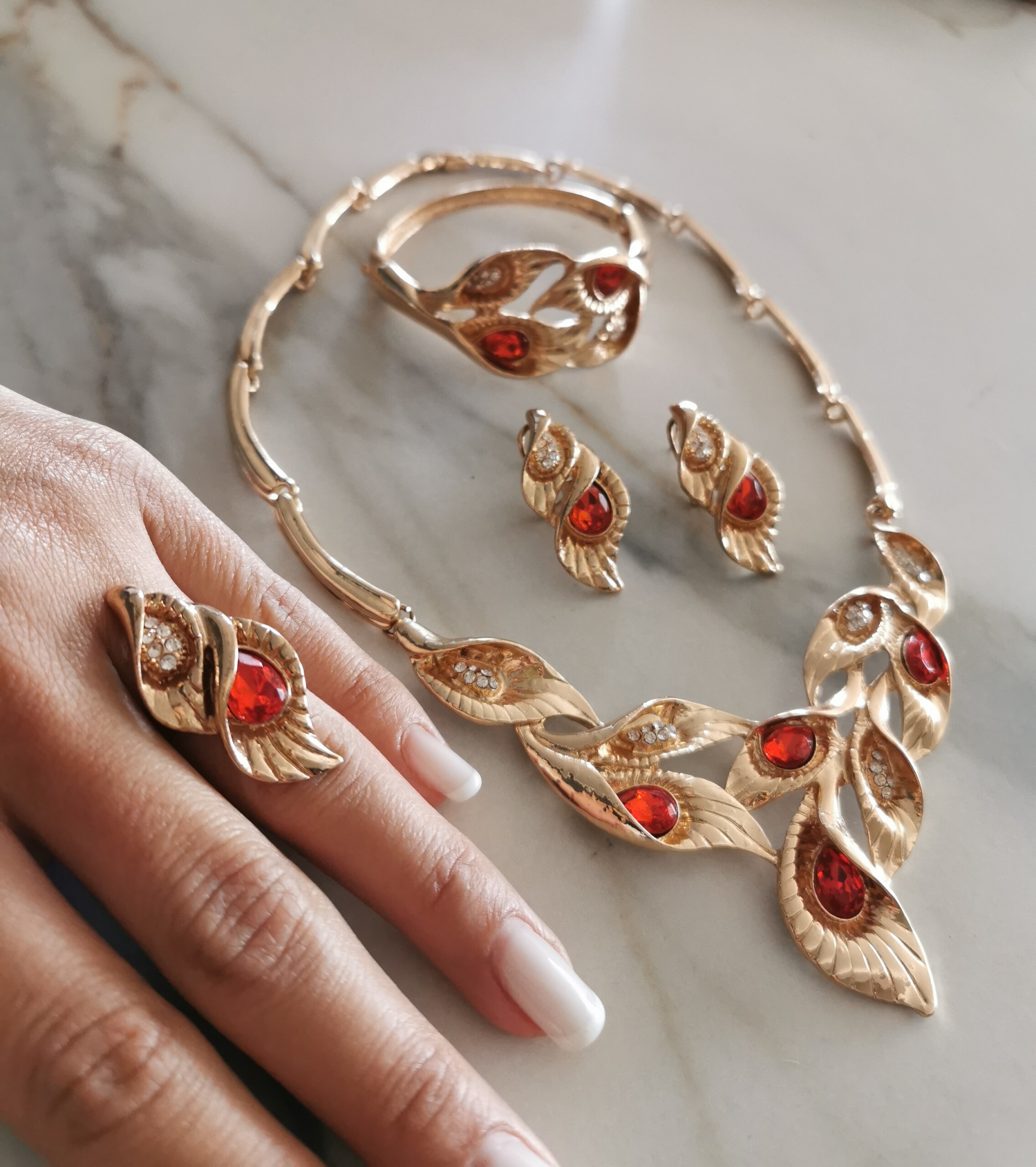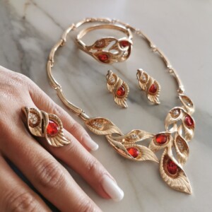 Vintage Red Set (Necklace, Earrings, Ring, Bracelet)