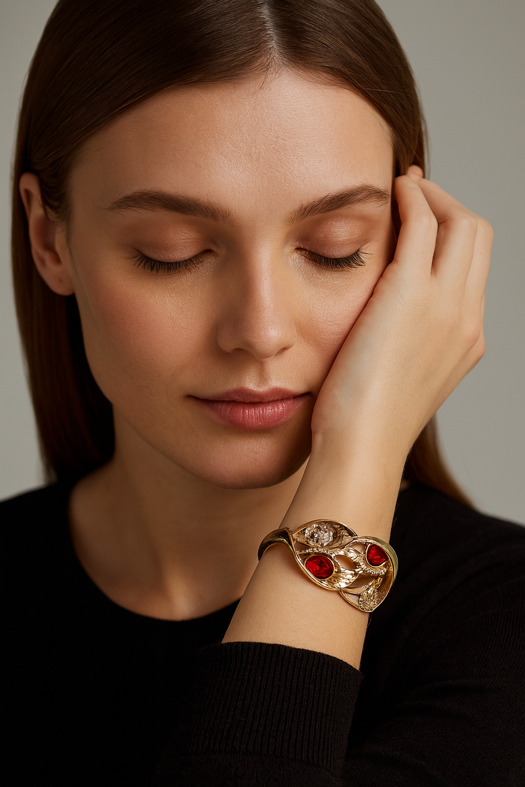Materials: Zinc Alloy, Red and Clear Rhinestones